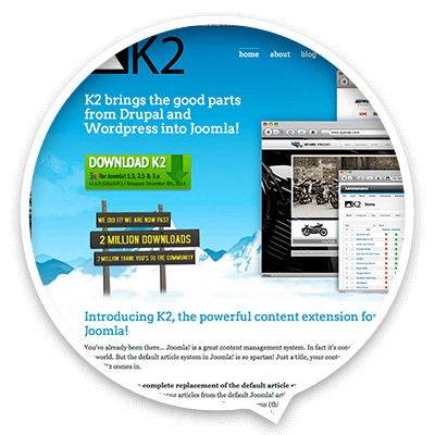 Journan comes with full K2 that supports the theme right out of the box! No need to mess with K2 styling to fit your site perfectly, Journal will apply all required styles based on your design automatically.